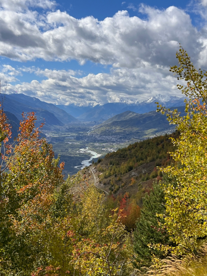 Blick weit ins Rhonètal und auf die Berge. Mitten in der Natur, bei extrem sonniger Hanglage können auch Sie Ihre Urlaubstage so richtig geniessen und die Seele baumeln lassen.